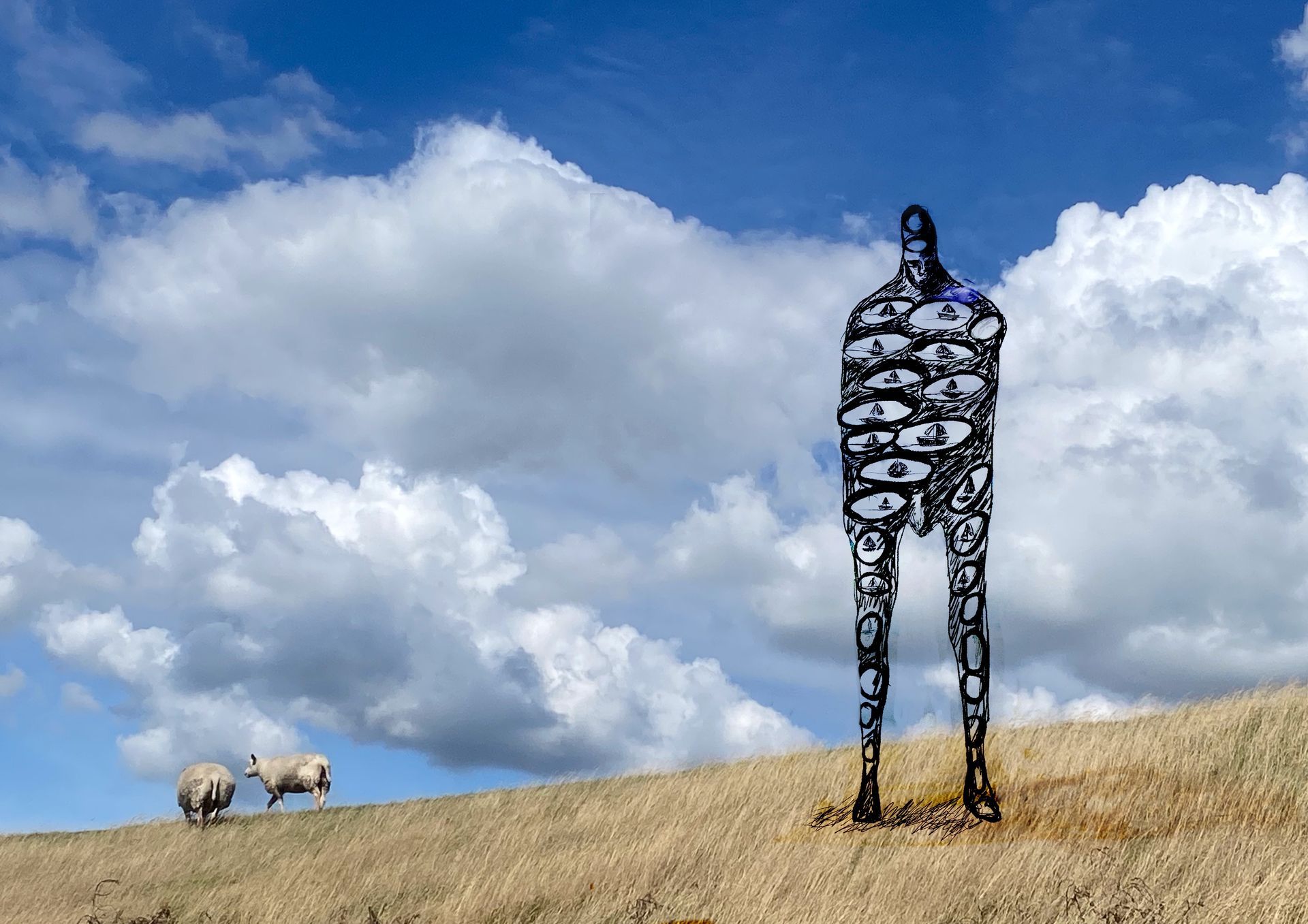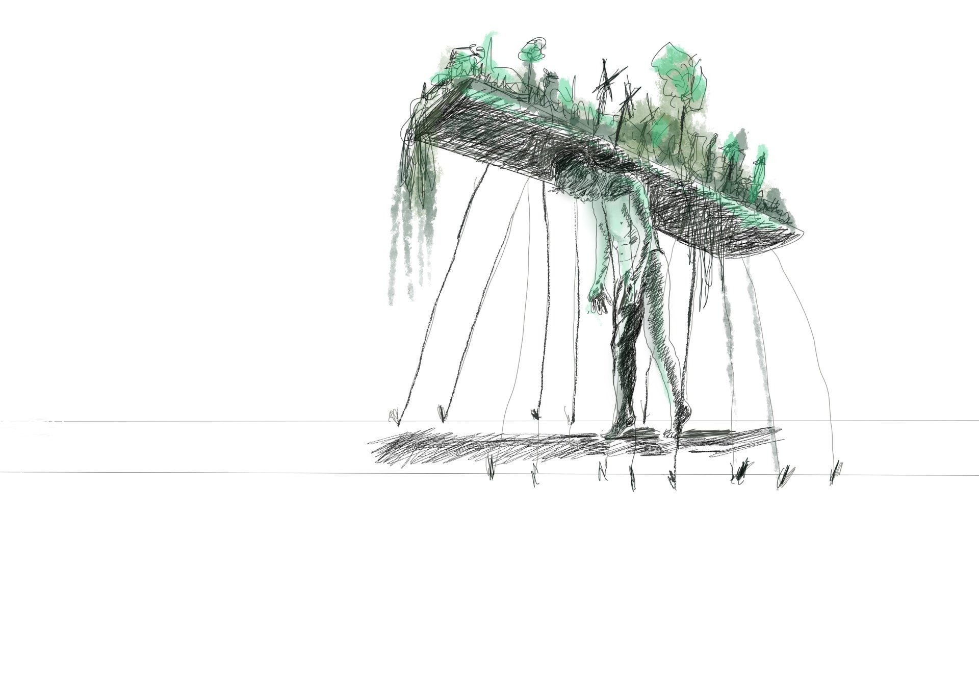 Tekening over de opgave om te komen tot een wereld waarin mens meer in harmonie met de atuur gaat leven