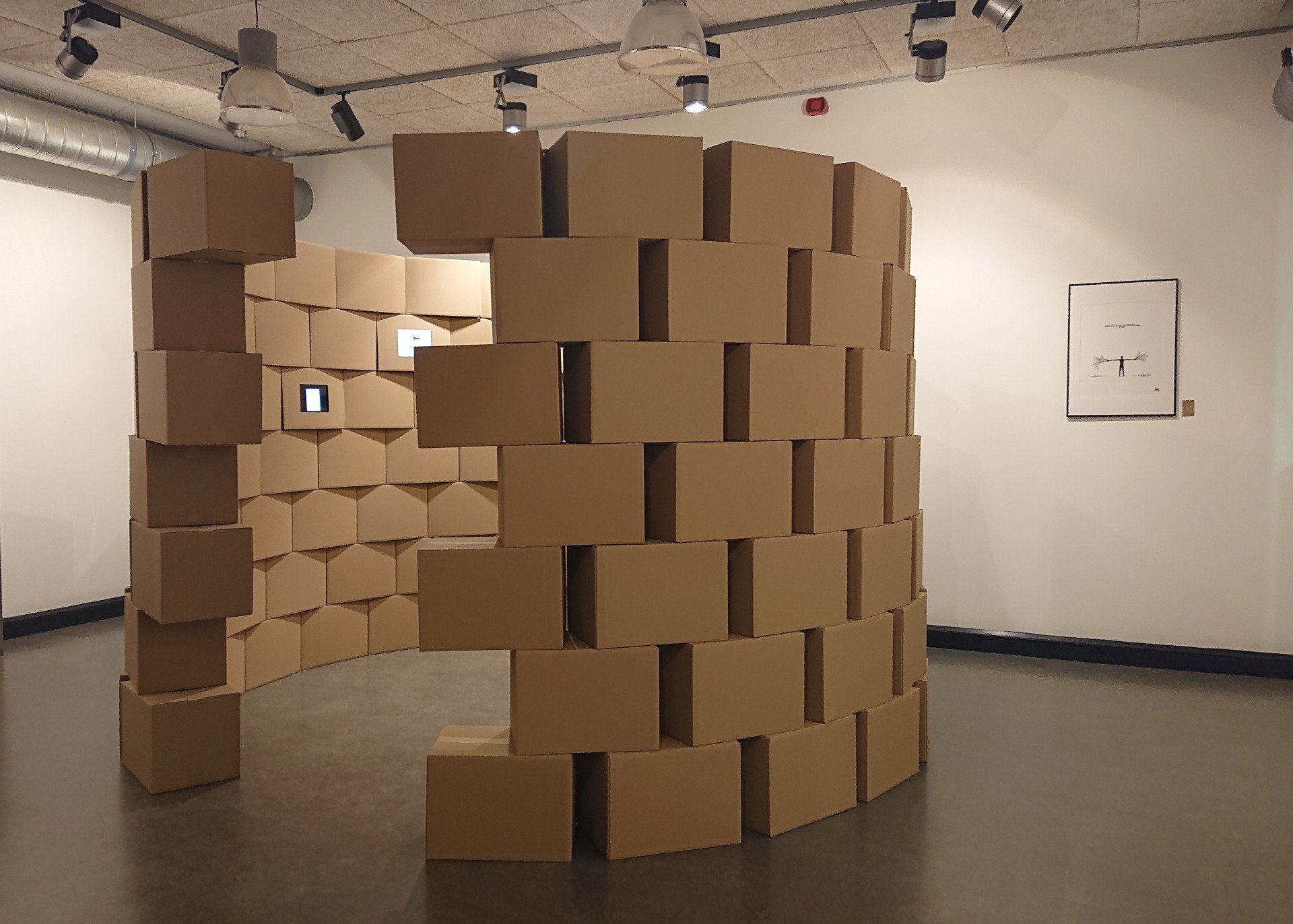 Dit kunstwerk in de vorm van blauwe handen is gemaakt door Kianoosh Gerami en toont de noodzaak van de hulpvraag van de zee om zich van het VisPluis te bevrijden.